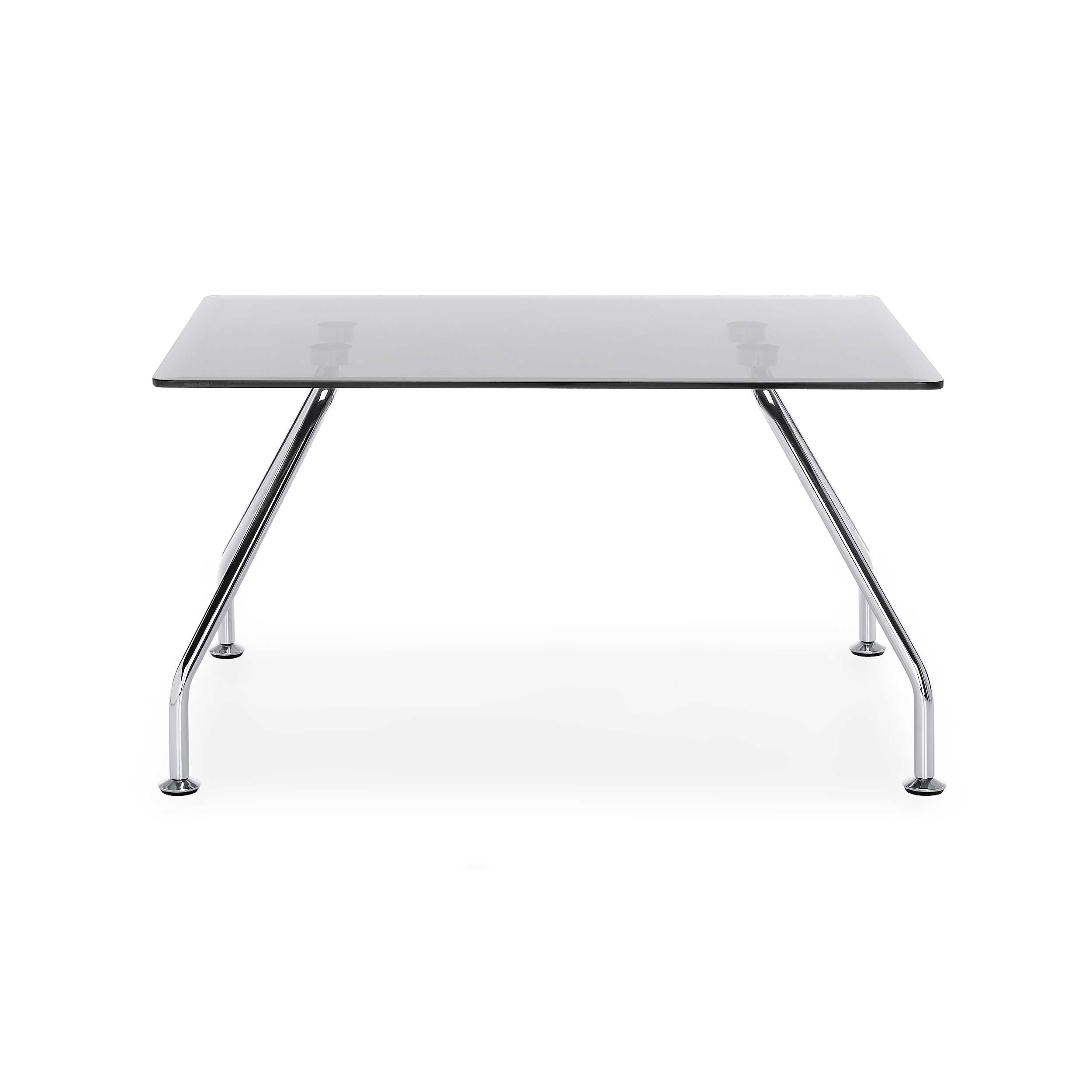 Table basse avec plateau en verre clair.