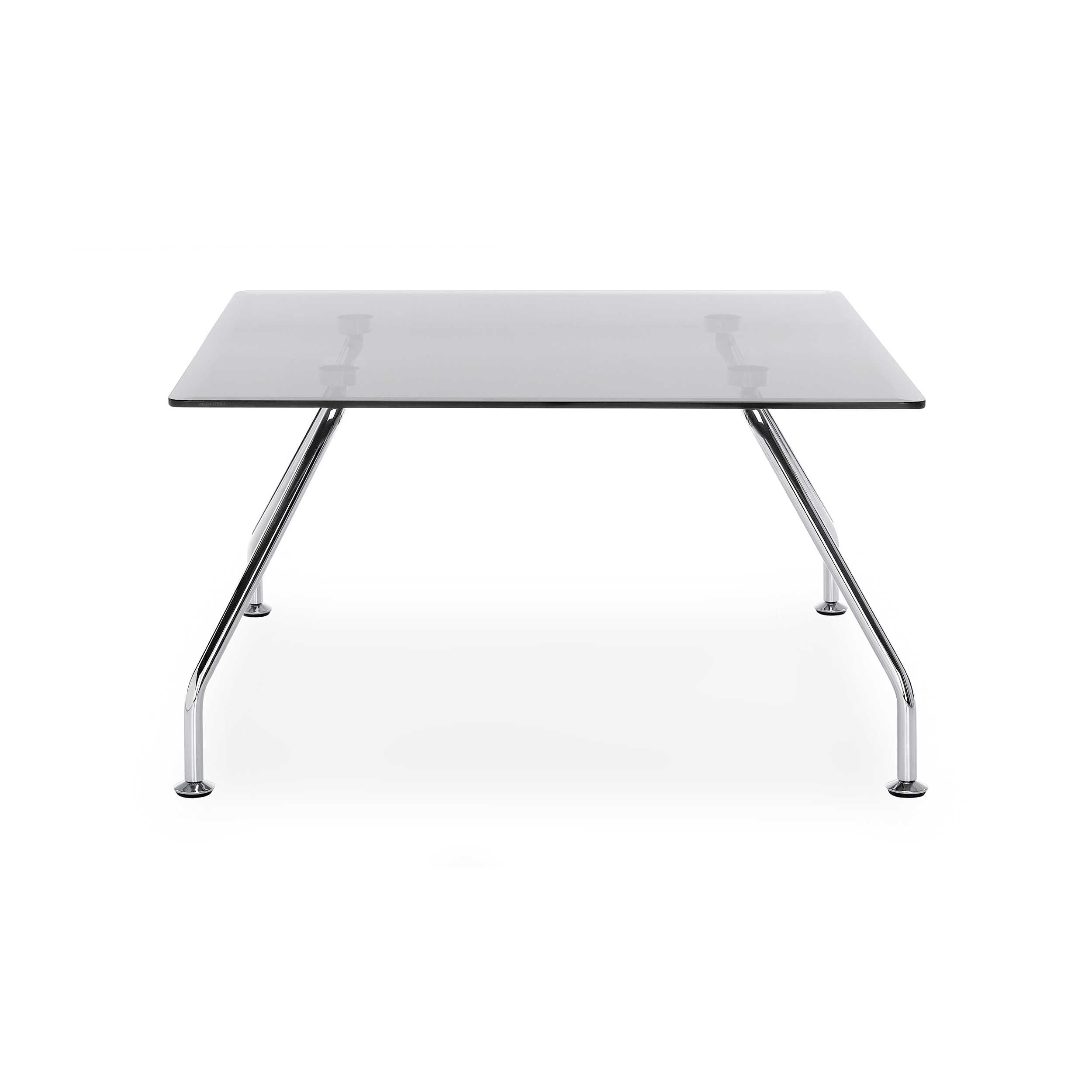 Table basse avec plateau en verre clair.
