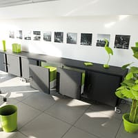 - Niedriger Schrank: praktisch für diskrete Aufbewahrung, ideal als Unterbauschrank oder in einem Besprechungsraum