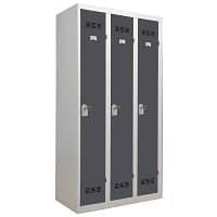Es wird aus robustem Stahl gefertigt, ist in 2 Korpusfarben erhältlich (Hellgrau RAL 7035 oder Anthrazit RAL 7016) und bietet eine große Auswahl an Türen aus 8 Standardfarben (Hellgrau, Basalt, Anis, Blau, Pflaume, Rot, Anthrazit, Reflexblau) sowie 3 Trendfarben (Khaki, Terrakotta, Honig – auf Anfrage).
