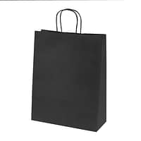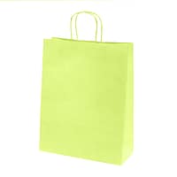 Available in 9 colors (gray, yellow, ocean blue, red, fuchsia, orange, anise, black, and brown), with matching twisted handles 100 g/m² kraft paper, combining strength, elegance, and practicality. Ideal for boutiques, shops, and events.