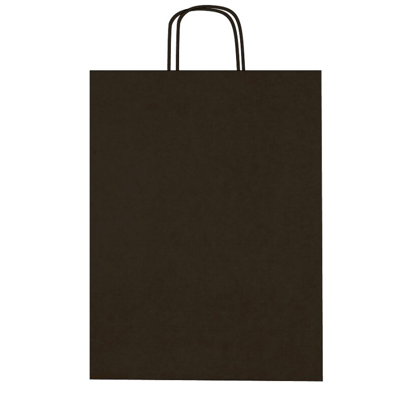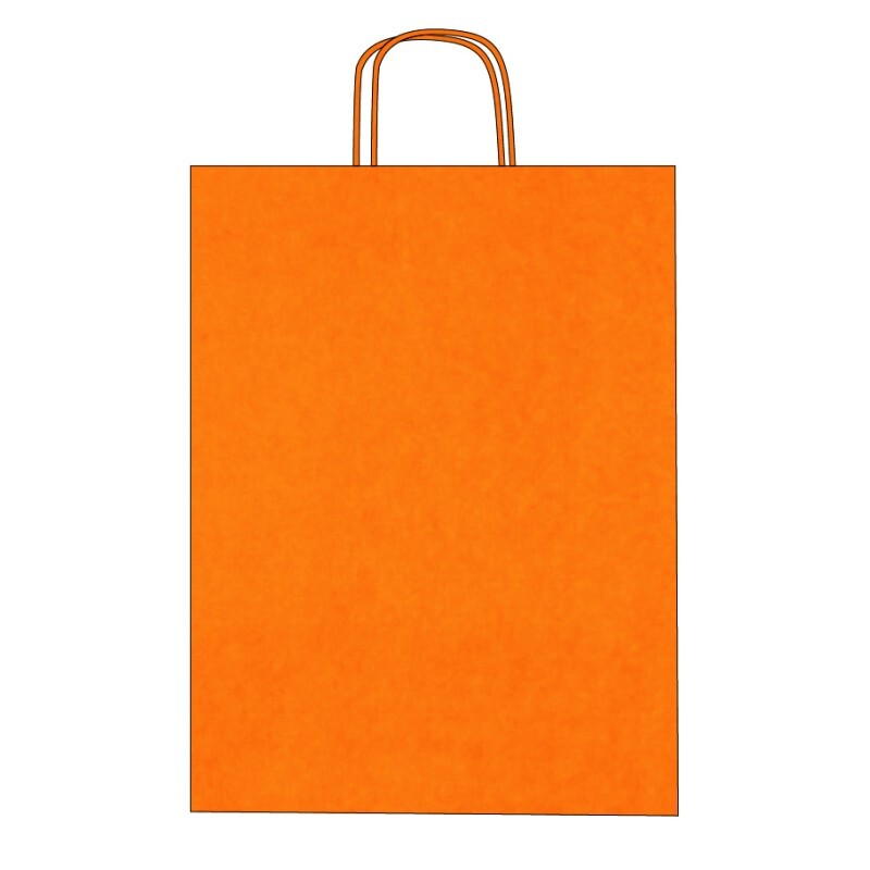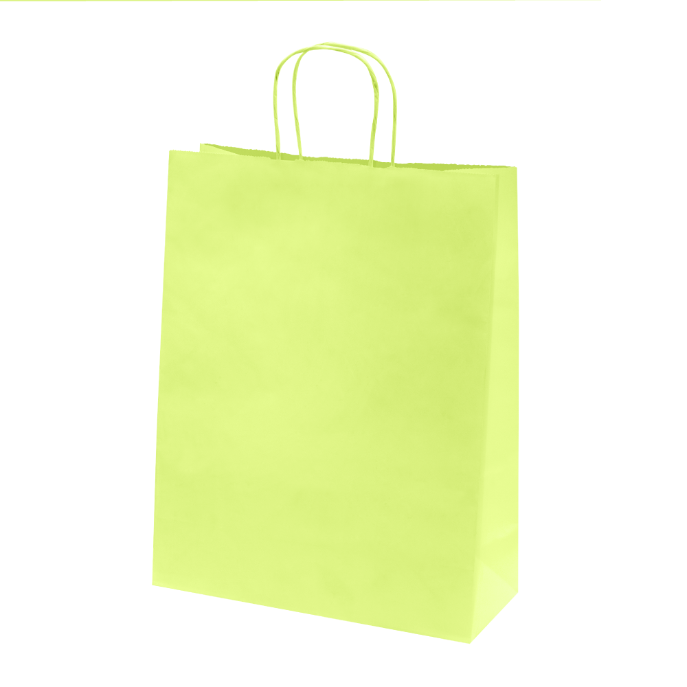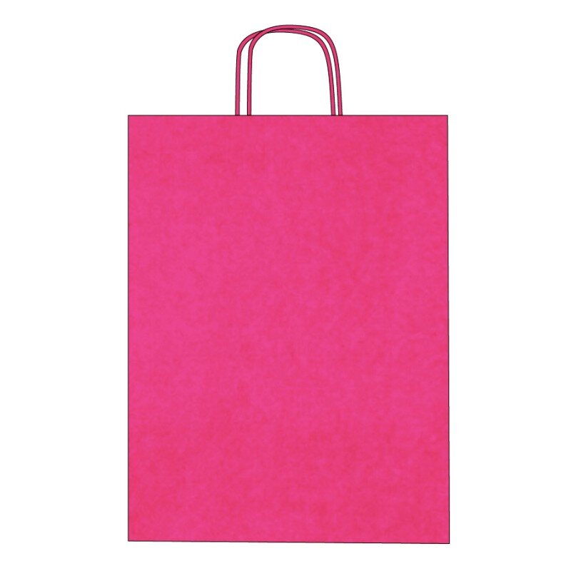 Disponibles en 9 coloris (gris, jaune, bleu océan, rouge, fuchsia, orange, anis, noir et marron), avec poignées torsadées assorties. Papier kraft 100 g/m² alliant robustesse, élégance et praticité. Idéals pour boutiques, commerces et événements.