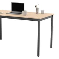 Son plateau rectangulaire décor bois apporte une touche chaleureuse et moderne, parfaitement adaptée aux environnements tertiaires. La structure en métal assure une excellente stabilité et une grande résistance à l’usage quotidien intensif.